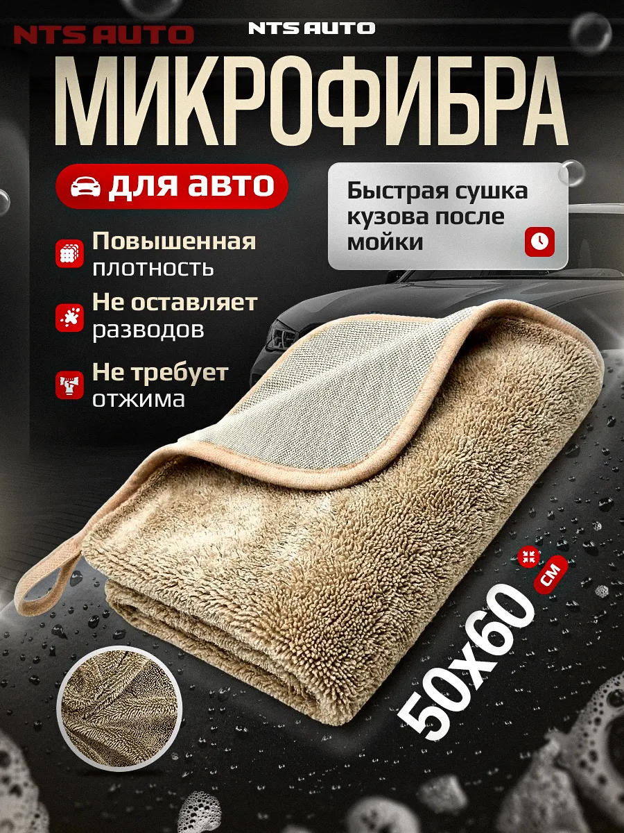 Полотенце из микрофибры для авто 50Х60см БЕЖЕВОЕ